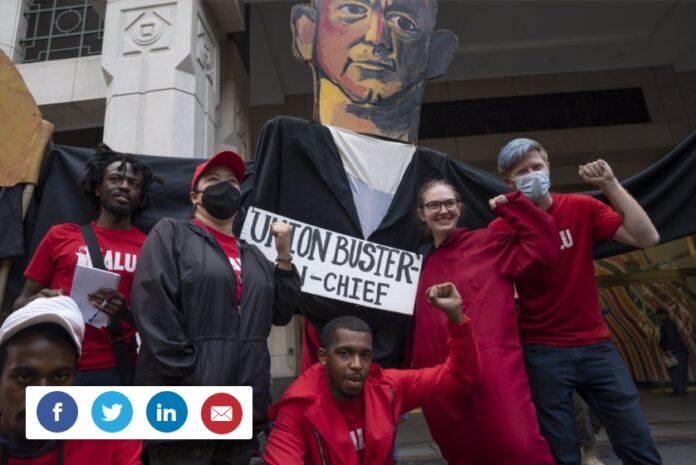 Nos últimos anos, a Amazon vem dedicando esforços para frustrar as tentativas de organização de seus funcionários, inundando seus locais de trabalho com mensagens antissindicais, como denunciaram trabalhadores e algumas organizações.