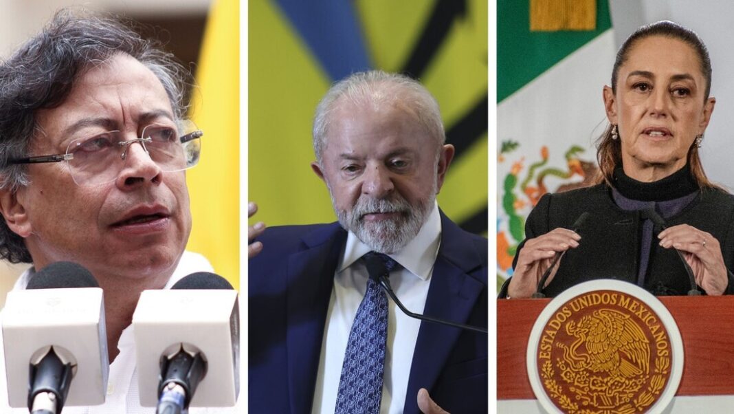 Os presidentes do Brasil, Luiz Inácio Lula da Silva (PT); do México, Claudia Sheinbaum; e da Colômbia, Gustavo Petro, assinaram uma nota conjunta divulgada nesta sexta-feira, em que pedem o cessar-fogo imediato no Oriente Médio. Querem também que os países envolvidos na guerra resolvam as divergências por meio da diplomacia.